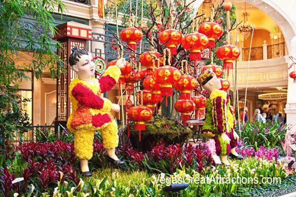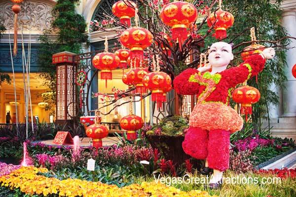 I was lucky to come back to Las Vegas right in time to see how my favorite hotel celebrates the Chinese New Year of the Goat. For about 2 months Las Vegas tourists could admire the art of welcoming the new year in the Chinese culture. Four times a year, Bellagio hotel is the center of some of the most popular Las Vegas family attractions.