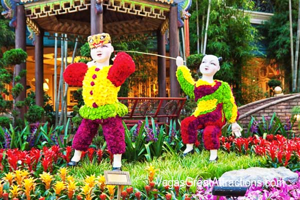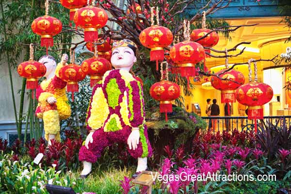As we entered to the Year of the Goat Las Vegas celebration, we could see the famous Chinese children dolls. Bellagio artists make them always using fresh-cut flowers (1,000 flowers each in this case).